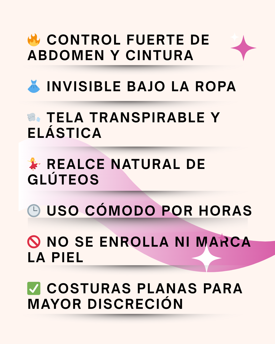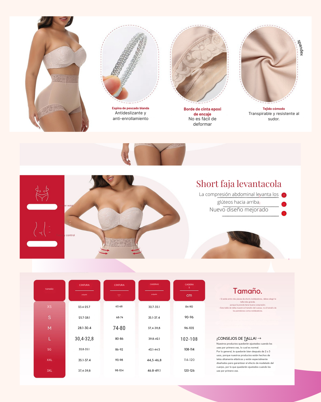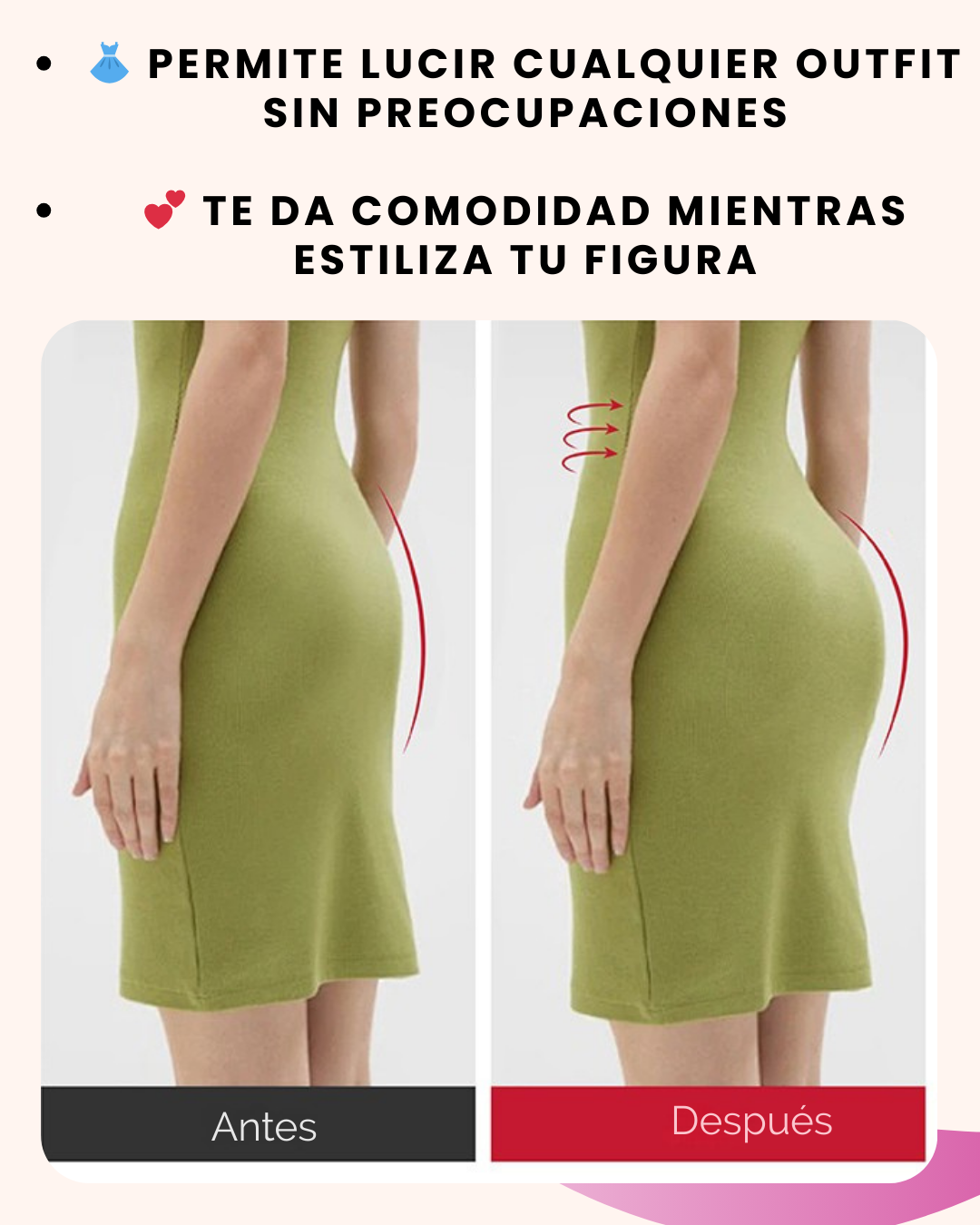 Moldea abdomen, cintura y caderas, mientras realza y da forma natural a los glúteos.